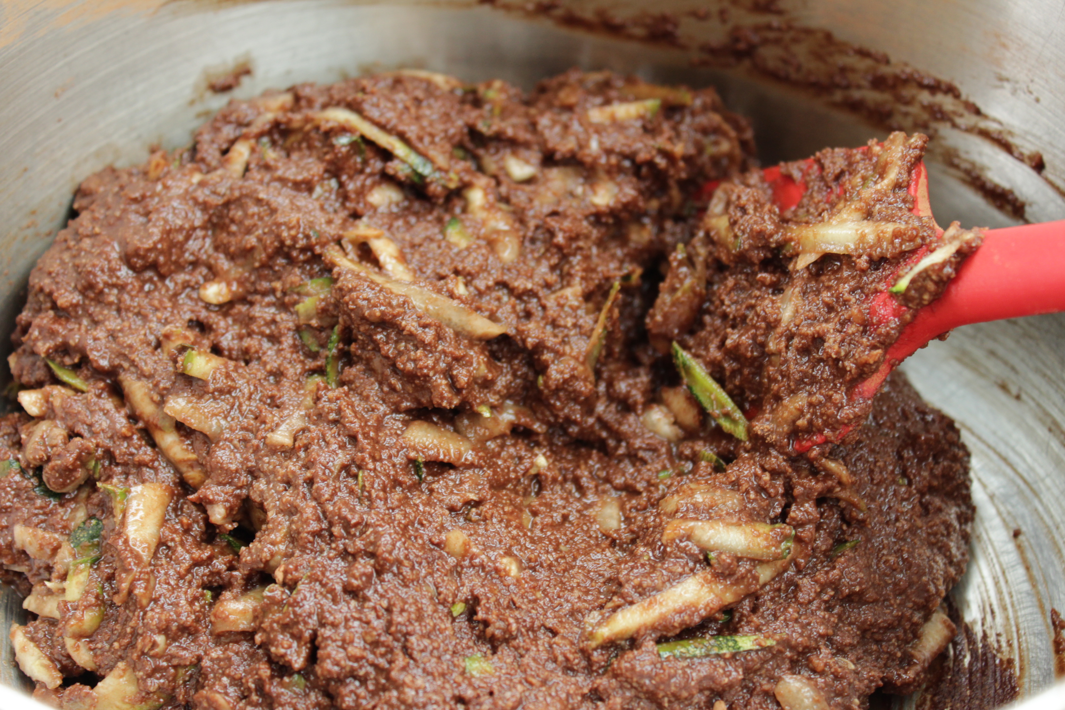 4. Add liquid ingredients to dry ingredients and stir well to combine. Fold in grated zucchini.