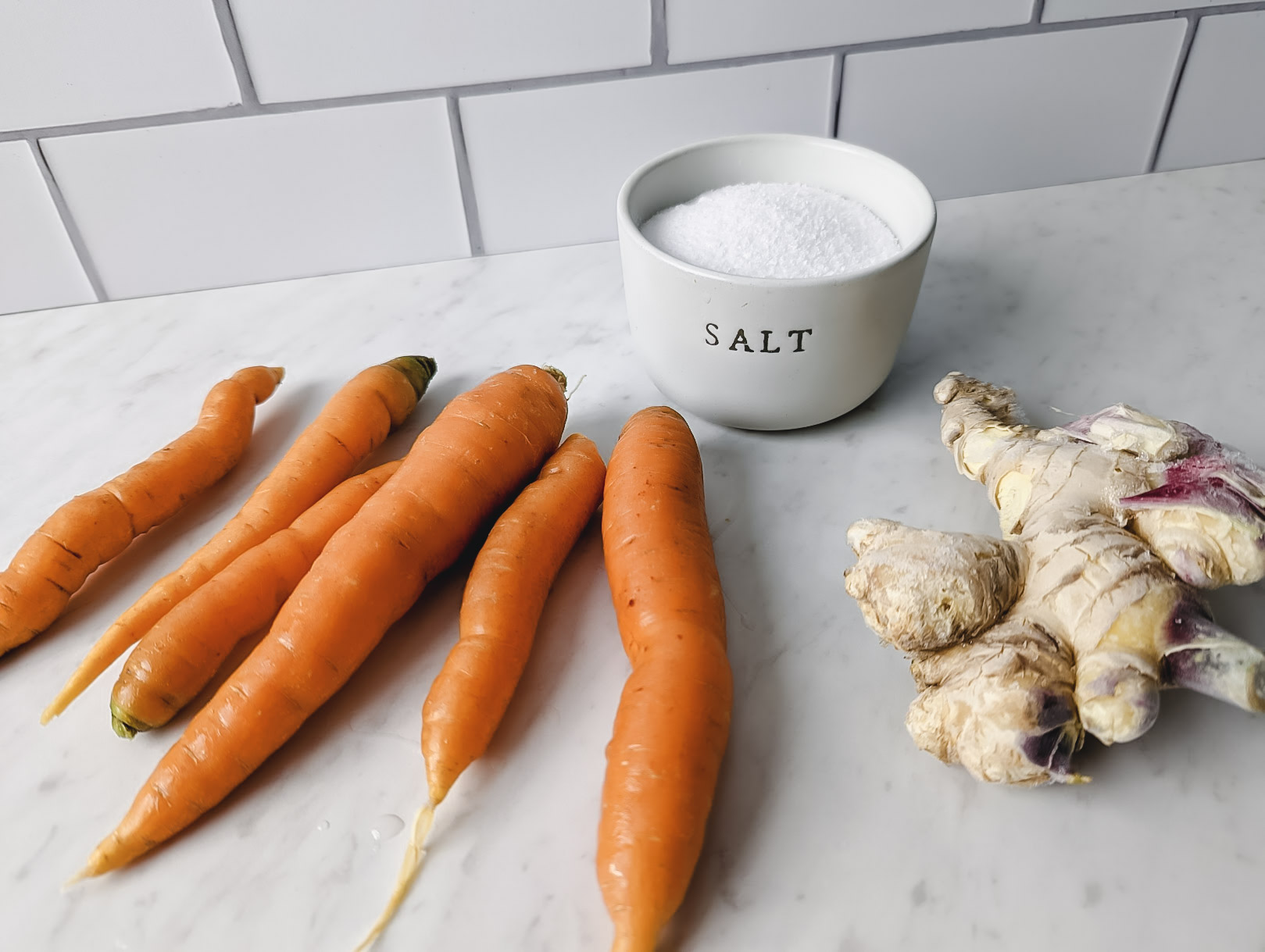 For this recipe, all you need is 3 ingredients and about 10 minutes. These fermented ginger carrots are brine-pickled and done in 4-5 days. They take less than 10 minutes to make using ingredients you probably already have on hand, they taste delicious, and this same process can be used to make other vegetables you have like beets, radishes, etc.