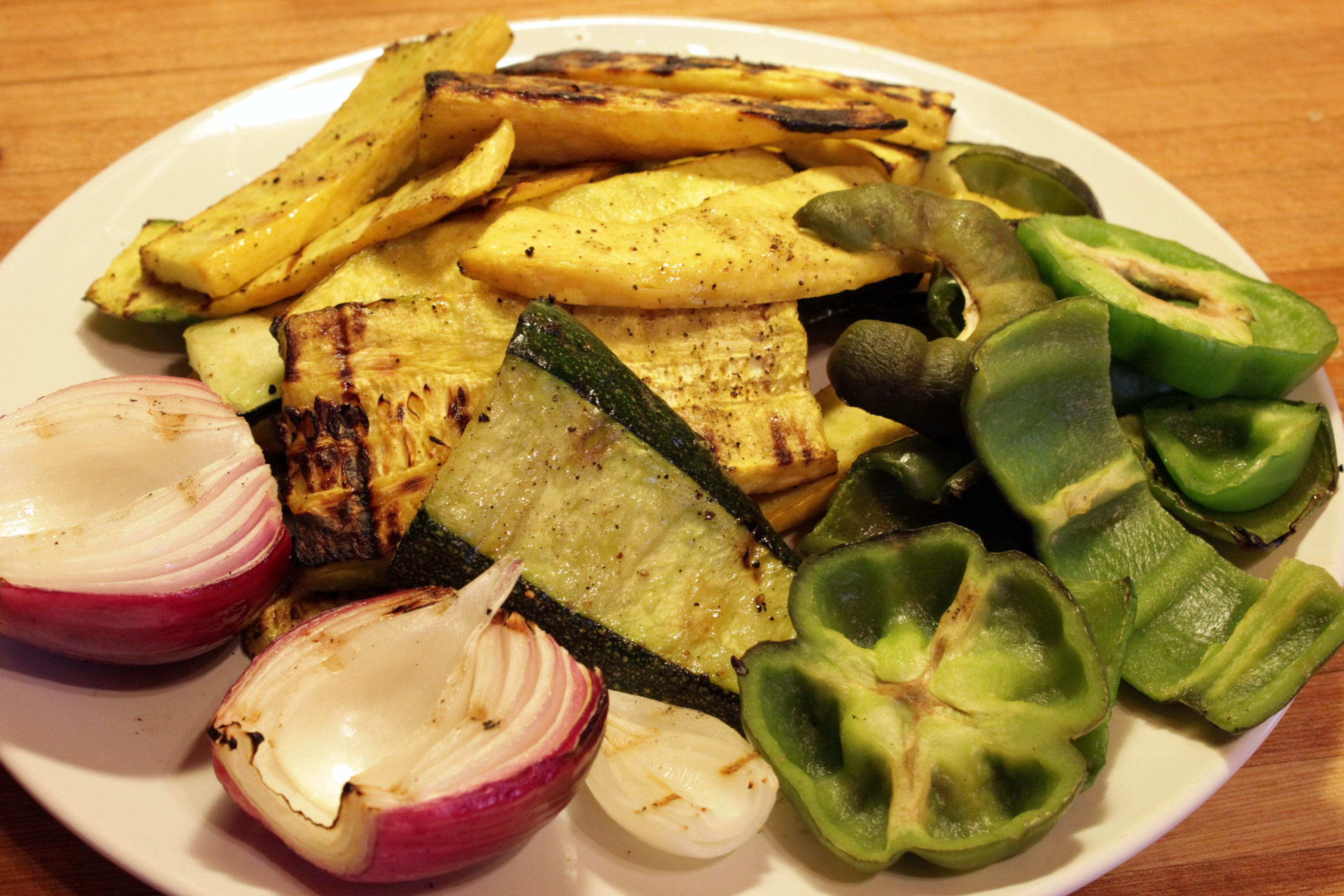 2. Wash and slice veggies into 1/2″ thick strips. Toss with oil and grill for 3 to 5 minutes on each side or until veggies are crisp-tender.