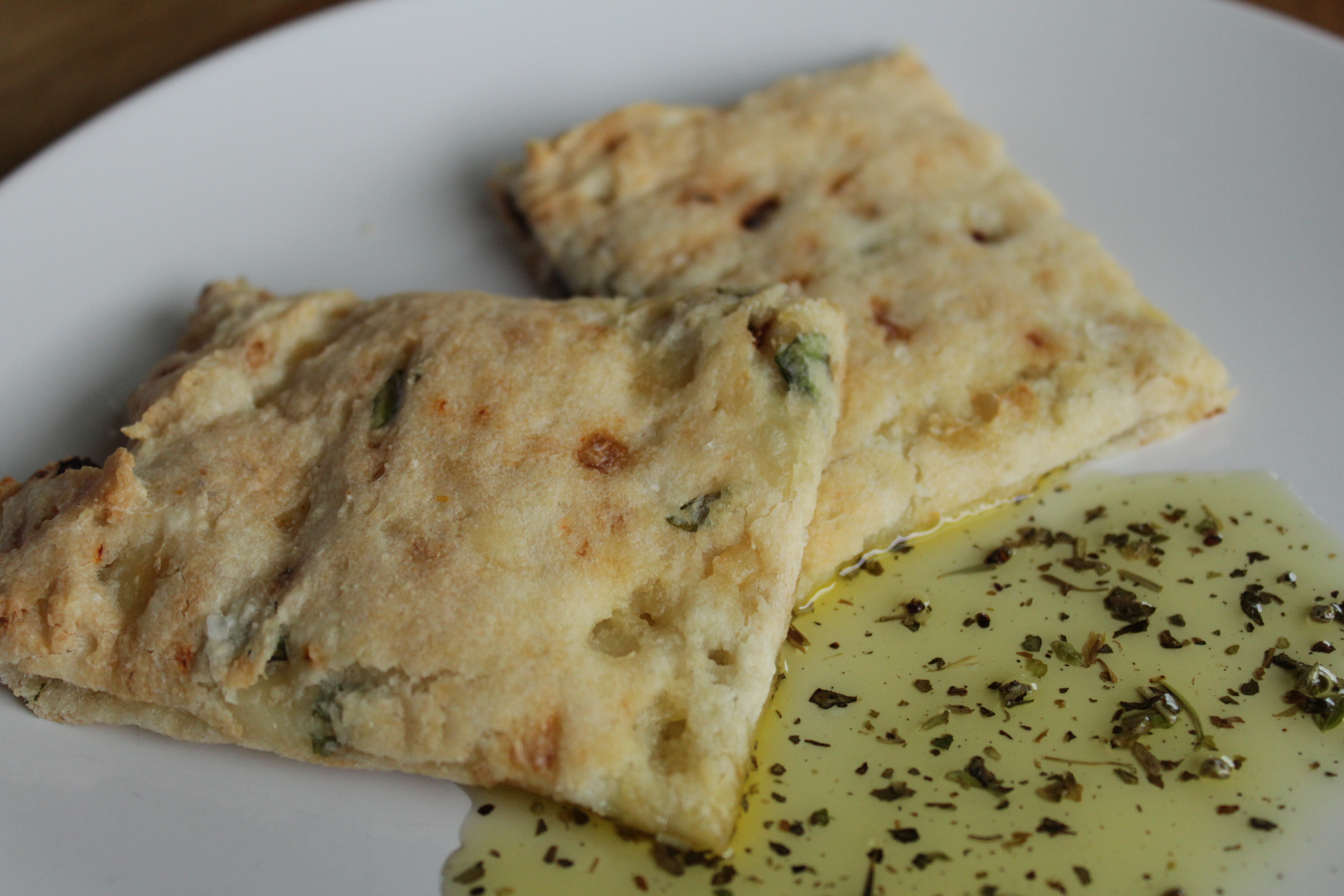 This flatbread is perfect for dipping in oil with herbs, hummus, pesto, or anything you’d like to dip it in. Add some toppings to turn it into a pizza or cut it into squares to make it into sandwich bread. Also, feel free to swap the herbs, tomatoes, onions, or garlic for herbs, spices, or other delicious fillings of your choice. Without the basil and tomatoes, it tastes like naan to go with your favorite Indian curry. YUM!